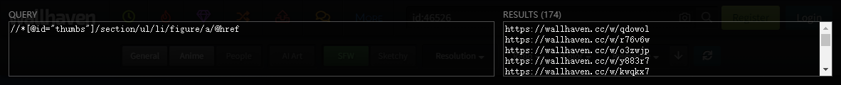 通过使用Xpath Helper,我们可以找到所有有完整图像的链接,其语句就是://*[@id="thumbs"]/section/ul/li/figure/a/@href
